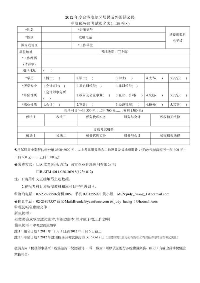 2012大陸註冊稅務師考試報名表