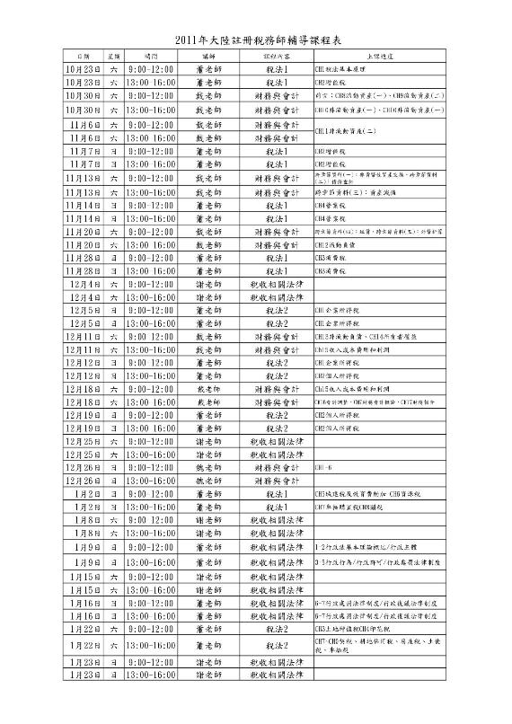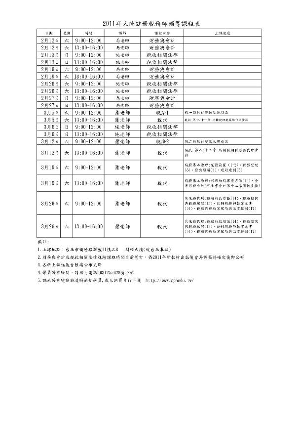 2011CTA課表